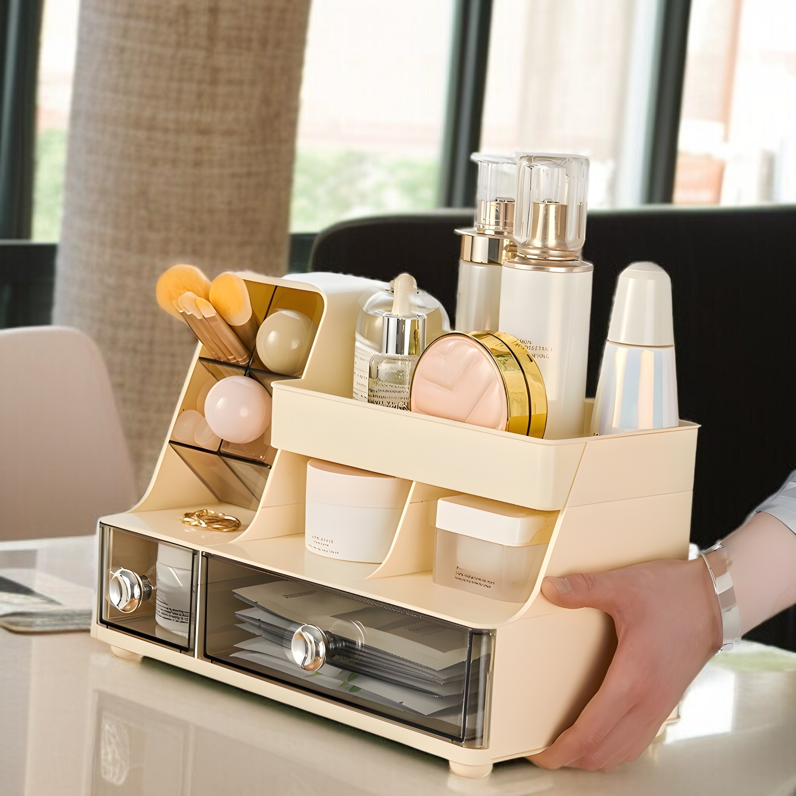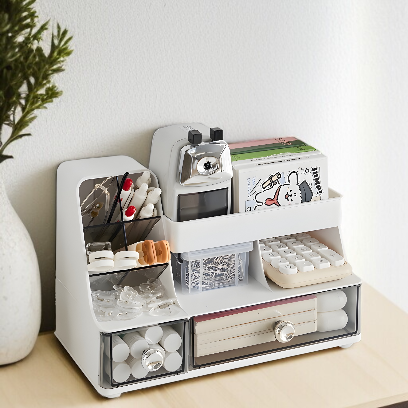 ● 多機能コンパートメントで、化粧品だけでなく文房具や小物も効率よく収納でき、使い勝手抜群です。